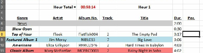 We provide the weekly playlist for you information, it allows you to accurately track the music we play and the results of your promotional activities. It also gives you guidance over the type of music we play, before you send us CD’s etc.